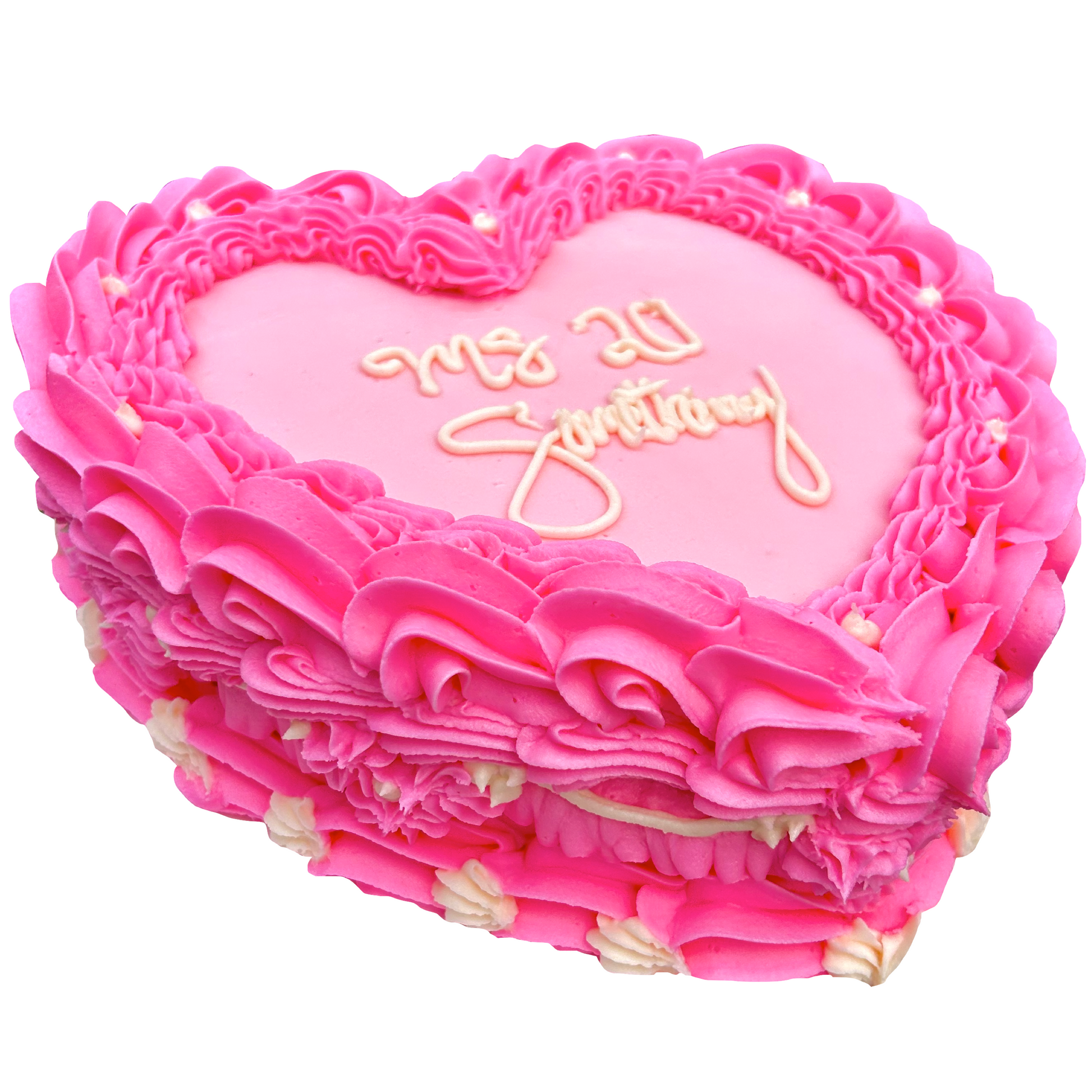 PHOTO DESCRIPTION: The cake pictured is a 8" heart cake, vintage frosting, with a base color of Light Pink and a secondary color of Hot Pink!